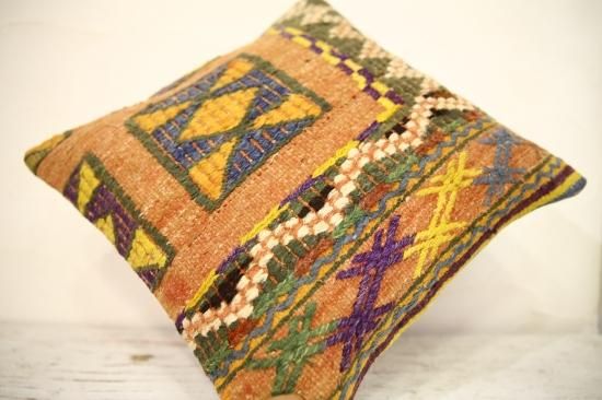 トルコファブリッククッション60x60cm オレンジ チンテマニデザイン
