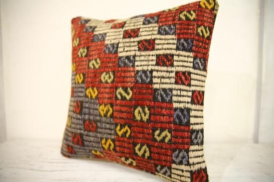 トルコファブリッククッション60x60cm ダークレッド チンテマニデザイン