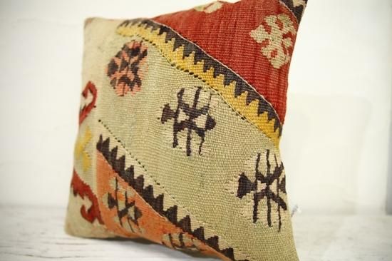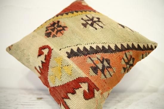 上質なオールドキリムを裁断して作られたクッションカバーです。表はオールドキリム、裏地はコットンで縫製されています。ソファやフロアなどキリムクッションを置くだけでとてもおしゃれな空間になります。もちろん座布団代わりにもOKです。和室との相性も◎です。ヌードクッションは当店からのサービスでお付けしています!届いてすぐに素敵なインテリアアイテムに仲間入り!!