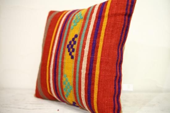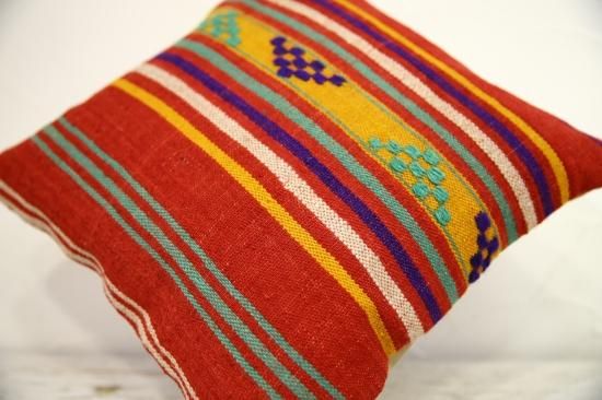 上質なオールドキリムを裁断して作られたクッションカバーです。表はオールドキリム、裏地はコットンで縫製されています。ソファやフロアなどキリムクッションを置くだけでとてもおしゃれな空間になります。もちろん座布団代わりにもOKです。和室との相性も◎です。ヌードクッションは当店からのサービスでお付けしています!届いてすぐに素敵なインテリアアイテムに仲間入り!!