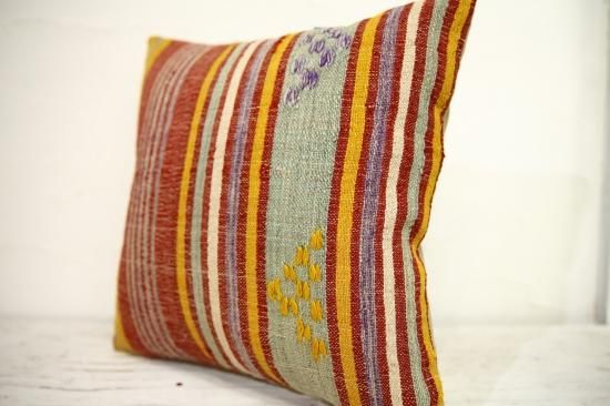上質なオールドキリムを裁断して作られたクッションカバーです。表はオールドキリム、裏地はコットンで縫製されています。ソファやフロアなどキリムクッションを置くだけでとてもおしゃれな空間になります。もちろん座布団代わりにもOKです。和室との相性も◎です。ヌードクッションは当店からのサービスでお付けしています!届いてすぐに素敵なインテリアアイテムに仲間入り!!