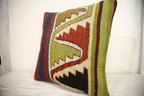 上質なオールドキリムを裁断して作られたクッションカバーです。表はオールドキリム、裏地はコットンで縫製されています。ソファやフロアなどキリムクッションを置くだけでとてもおしゃれな空間になります。もちろん座布団代わりにもOKです。和室との相性も◎です。ヌードクッションは当店からのサービスでお付けしています!届いてすぐに素敵なインテリアアイテムに仲間入り!!