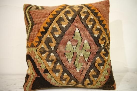上質なオールドキリムを裁断して作られたクッションカバーです。表はオールドキリム、裏地はコットンで縫製されています。ソファやフロアなどキリムクッションを置くだけでとてもおしゃれな空間になります。もちろん座布団代わりにもOKです。和室との相性も◎です。ヌードクッションは当店からのサービスでお付けしています!届いてすぐに素敵なインテリアアイテムに仲間入り!!