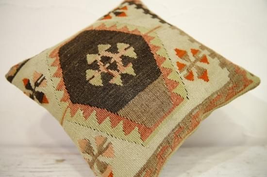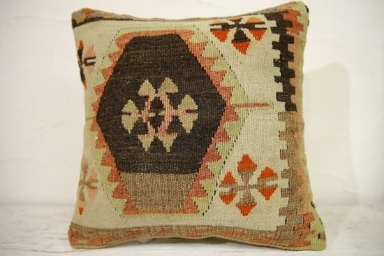 上質なオールドキリムを裁断して作られたクッションカバーです。表はオールドキリム、裏地はコットンで縫製されています。ソファやフロアなどキリムクッションを置くだけでとてもおしゃれな空間になります。もちろん座布団代わりにもOKです。和室との相性も◎です。ヌードクッションは当店からのサービスでお付けしています!届いてすぐに素敵なインテリアアイテムに仲間入り!!