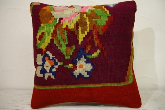 トルコファブリッククッション60x60cm ダークレッド チンテマニデザイン