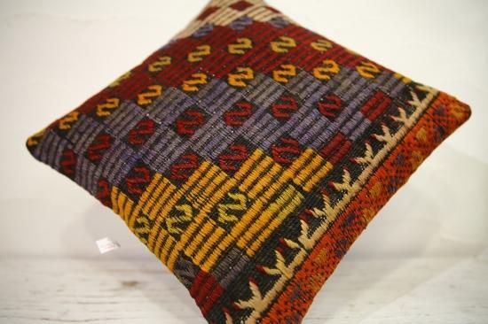 上質なオールドキリムを裁断して作られたクッションカバーです。表はオールドキリム、裏地はコットンで縫製されています。ソファやフロアなどキリムクッションを置くだけでとてもおしゃれな空間になります。もちろん座布団代わりにもOKです。和室との相性も◎です。ヌードクッションは当店からのサービスでお付けしています!届いてすぐに素敵なインテリアアイテムに仲間入り!!