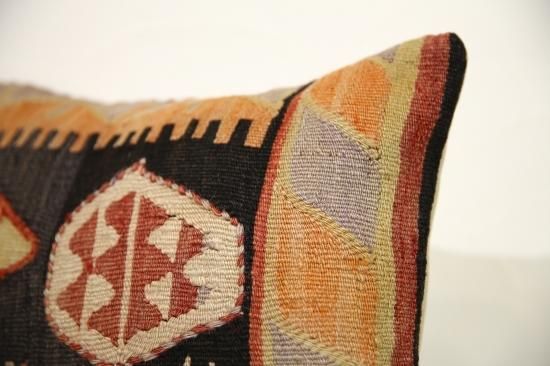 上質なオールドキリムを裁断して作られたクッションカバーです。表はオールドキリム、裏地はコットンで縫製されています。ソファやフロアなどキリムクッションを置くだけでとてもおしゃれな空間になります。もちろん座布団代わりにもOKです。和室との相性も◎です。ヌードクッションは当店からのサービスでお付けしています!届いてすぐに素敵なインテリアアイテムに仲間入り!!