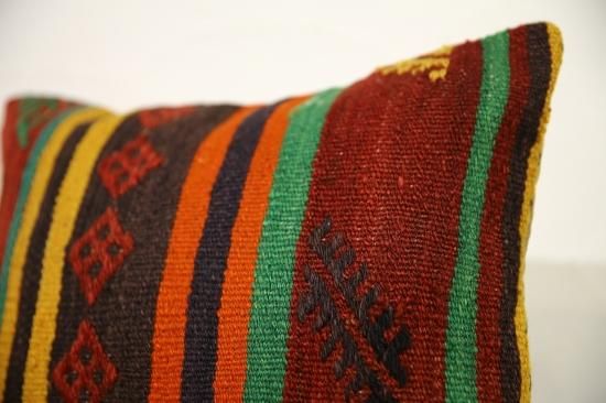 上質なオールドキリムを裁断して作られたクッションカバーです。表はオールドキリム、裏地はコットンで縫製されています。ソファやフロアなどキリムクッションを置くだけでとてもおしゃれな空間になります。もちろん座布団代わりにもOKです。和室との相性も◎です。ヌードクッションは当店からのサービスでお付けしています!届いてすぐに素敵なインテリアアイテムに仲間入り!!
