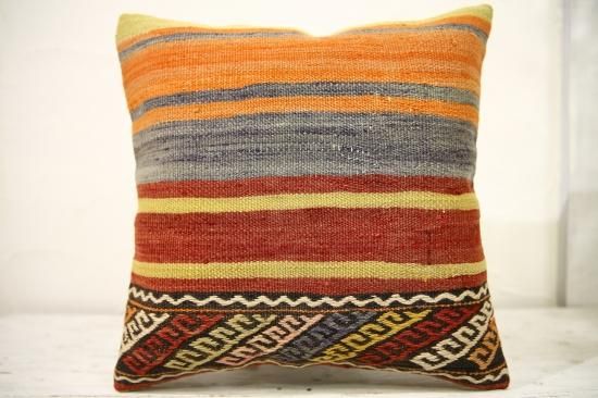 上質なオールドキリムを裁断して作られたクッションカバーです。表はオールドキリム、裏地はコットンで縫製されています。ソファやフロアなどキリムクッションを置くだけでとてもおしゃれな空間になります。もちろん座布団代わりにもOKです。和室との相性も◎です。ヌードクッションは当店からのサービスでお付けしています!届いてすぐに素敵なインテリアアイテムに仲間入り!!