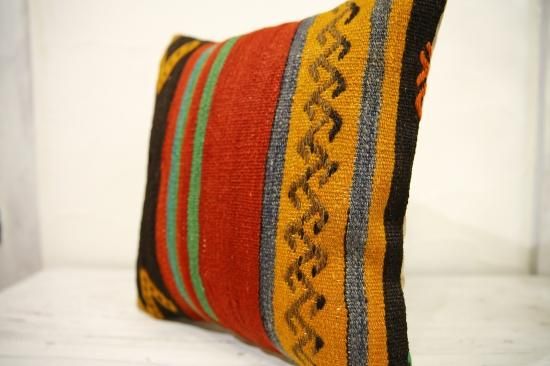 上質なオールドキリムを裁断して作られたクッションカバーです。表はオールドキリム、裏地はコットンで縫製されています。ソファやフロアなどキリムクッションを置くだけでとてもおしゃれな空間になります。もちろん座布団代わりにもOKです。和室との相性も◎です。ヌードクッションは当店からのサービスでお付けしています!届いてすぐに素敵なインテリアアイテムに仲間入り!!