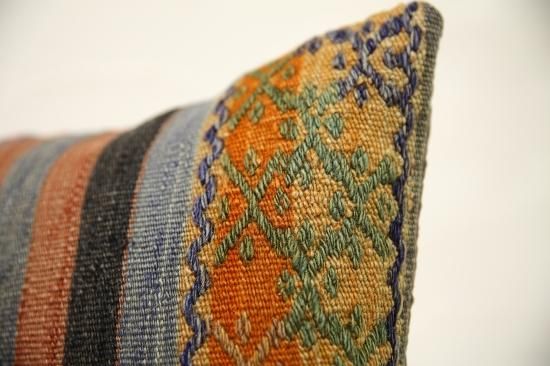 トルコファブリッククッション50x30cm ターコイズブルー チンテマニデザイン