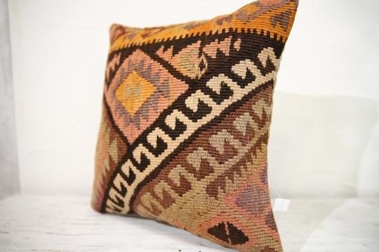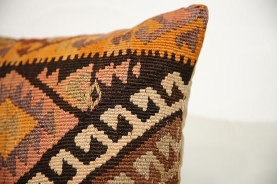 上質なオールドキリムを裁断して作られたクッションカバーです。表はオールドキリム、裏地はコットンで縫製されています。ソファやフロアなどキリムクッションを置くだけでとてもおしゃれな空間になります。もちろん座布団代わりにもOKです。和室との相性も◎です。ヌードクッションは当店からのサービスでお付けしています!届いてすぐに素敵なインテリアアイテムに仲間入り!!