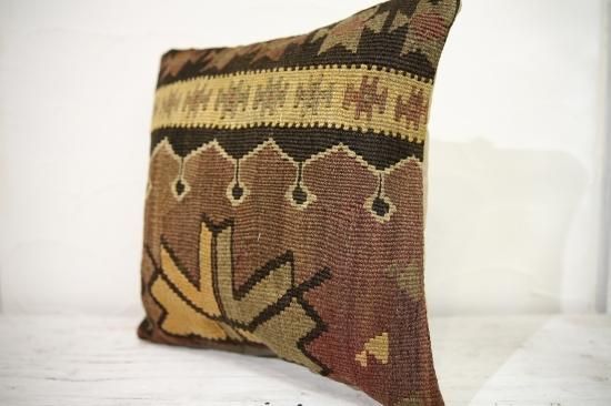 上質なオールドキリムを裁断して作られたクッションカバーです。表はオールドキリム、裏地はコットンで縫製されています。ソファやフロアなどキリムクッションを置くだけでとてもおしゃれな空間になります。もちろん座布団代わりにもOKです。和室との相性も◎です。ヌードクッションは当店からのサービスでお付けしています!届いてすぐに素敵なインテリアアイテムに仲間入り!!