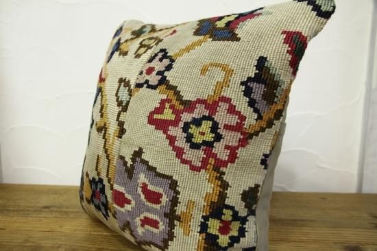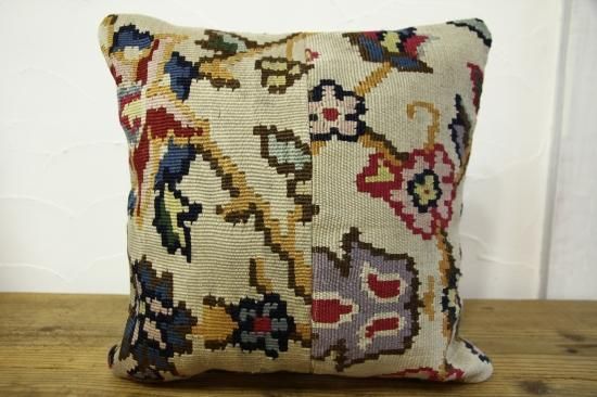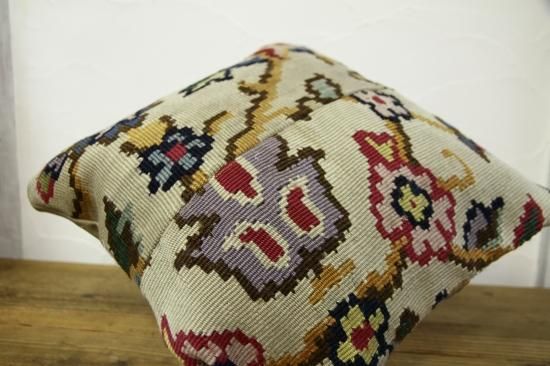 上質なオールドキリムを裁断して作られたクッションカバーです。表はオールドキリム、裏地はコットンで縫製されています。ソファやフロアなどキリムクッションを置くだけでとてもおしゃれな空間になります。もちろん座布団代わりにもOKです。和室との相性も◎です。ヌードクッションは当店からのサービスでお付けしています!届いてすぐに素敵なインテリアアイテムに仲間入り!!
