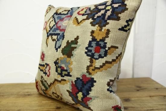 トルコファブリッククッション45x45cm ベージュ スウィングチューリップデザイン