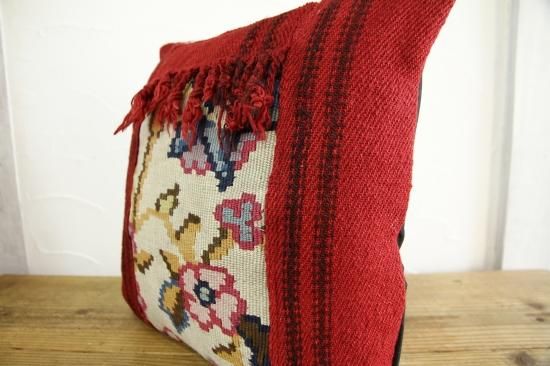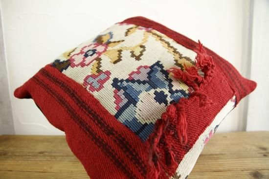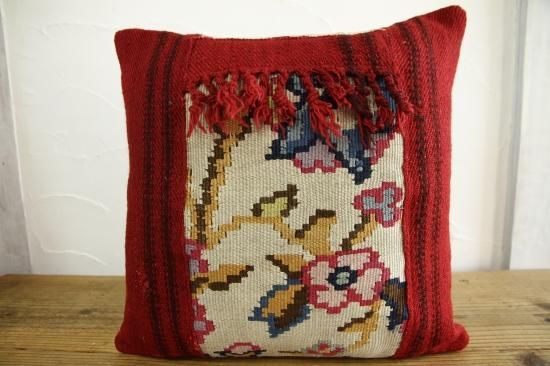 上質なオールドキリムを裁断して作られたクッションカバーです。表はオールドキリム、裏地はコットンで縫製されています。ソファやフロアなどキリムクッションを置くだけでとてもおしゃれな空間になります。もちろん座布団代わりにもOKです。和室との相性も◎です。ヌードクッションは当店からのサービスでお付けしています!届いてすぐに素敵なインテリアアイテムに仲間入り!!