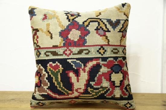 トルコファブリッククッション45x45cm ベージュ スウィングチューリップデザイン