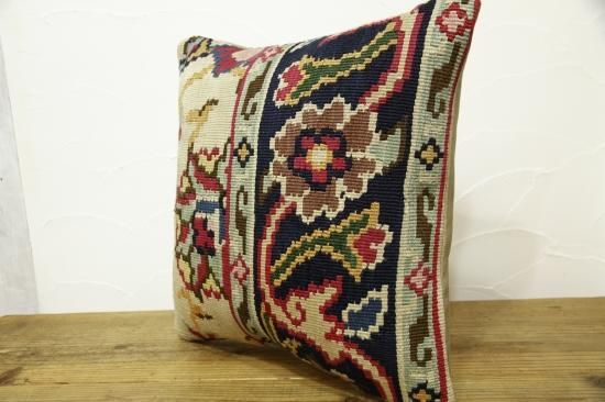 トルコファブリッククッション45x45cm ネイビー アラビアンナイトデザイン