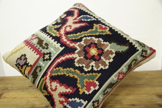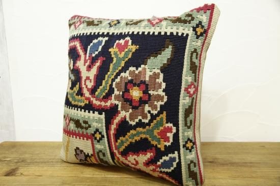 トルコファブリッククッション45x45cm ネイビー アラビアンナイトデザイン