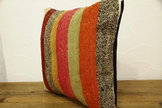上質なオールドキリムを裁断して作られたクッションカバーです。表はオールドキリム、裏地はコットンで縫製されています。ソファやフロアなどキリムクッションを置くだけでとてもおしゃれな空間になります。もちろん座布団代わりにもOKです。和室との相性も◎です。ヌードクッションは当店からのサービスでお付けしています!届いてすぐに素敵なインテリアアイテムに仲間入り!!