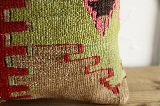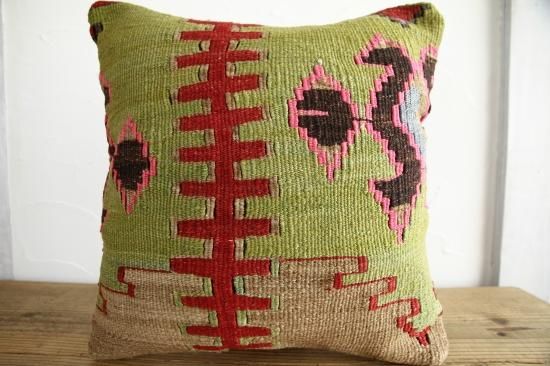 上質なオールドキリムを裁断して作られたクッションカバーです。表はオールドキリム、裏地はコットンで縫製されています。ソファやフロアなどキリムクッションを置くだけでとてもおしゃれな空間になります。もちろん座布団代わりにもOKです。和室との相性も◎です。ヌードクッションは当店からのサービスでお付けしています!届いてすぐに素敵なインテリアアイテムに仲間入り!!