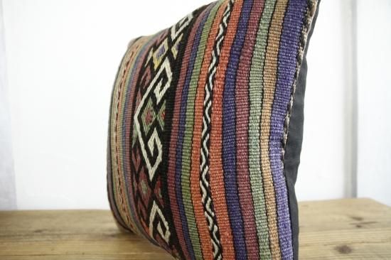 上質なオールドキリムを裁断して作られたクッションカバーです。表はオールドキリム、裏地はコットンで縫製されています。ソファやフロアなどキリムクッションを置くだけでとてもおしゃれな空間になります。もちろん座布団代わりにもOKです。和室との相性も◎です。ヌードクッションは当店からのサービスでお付けしています!届いてすぐに素敵なインテリアアイテムに仲間入り!!
