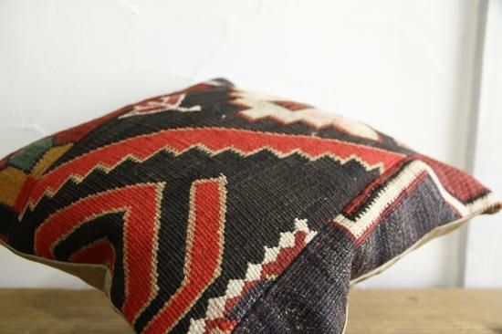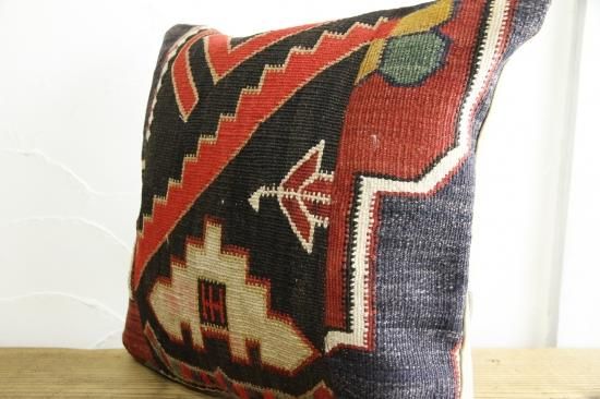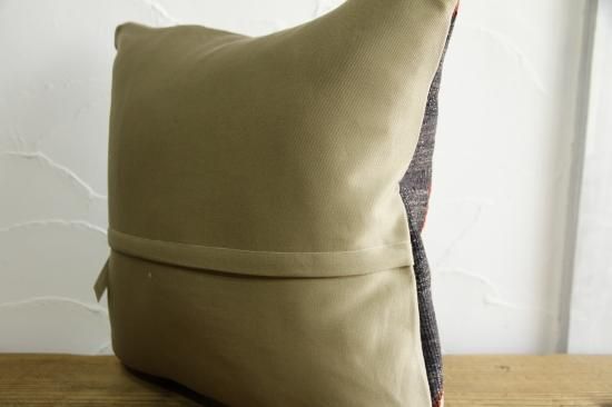 上質なオールドキリムを裁断して作られたクッションカバーです。表はオールドキリム、裏地はコットンで縫製されています。ソファやフロアなどキリムクッションを置くだけでとてもおしゃれな空間になります。もちろん座布団代わりにもOKです。和室との相性も◎です。ヌードクッションは当店からのサービスでお付けしています!届いてすぐに素敵なインテリアアイテムに仲間入り!!