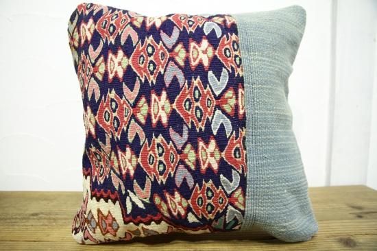 トルコファブリッククッション45x45cm ネイビー アラビアンナイトデザイン
