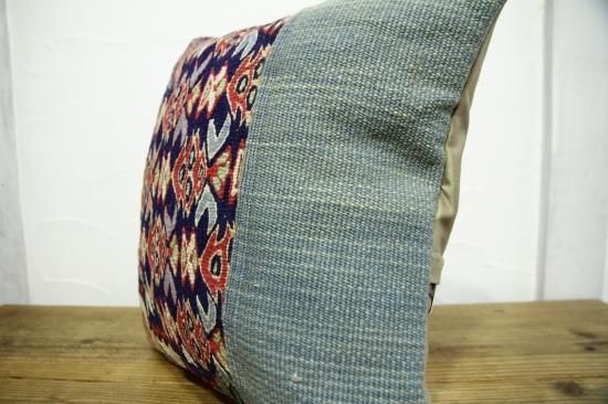 トルコファブリッククッション50x30cm ターコイズブルー チンテマニデザイン
