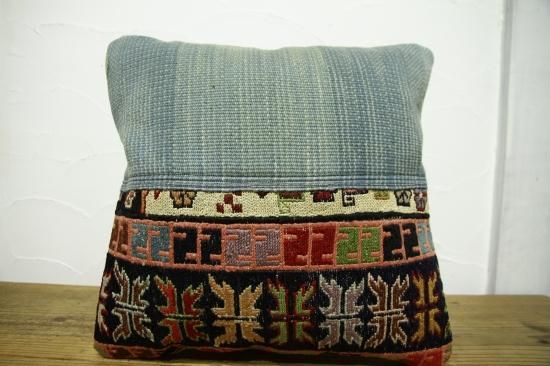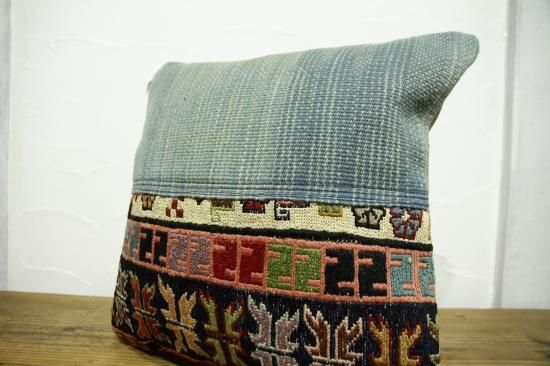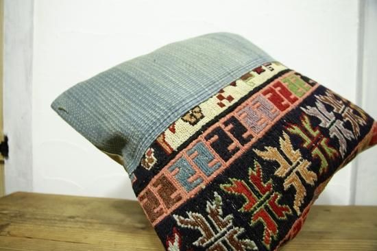 上質なオールドキリムを裁断して作られたクッションカバーです。表はオールドキリム、裏地はコットンで縫製されています。ソファやフロアなどキリムクッションを置くだけでとてもおしゃれな空間になります。もちろん座布団代わりにもOKです。和室との相性も◎です。ヌードクッションは当店からのサービスでお付けしています!届いてすぐに素敵なインテリアアイテムに仲間入り!!