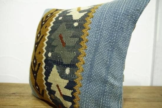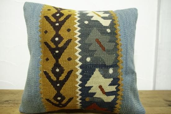 トルコファブリッククッション50x50cm ターコイズブルー チンテマニデザイン