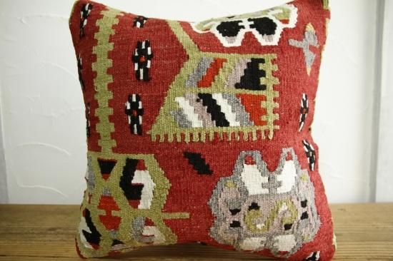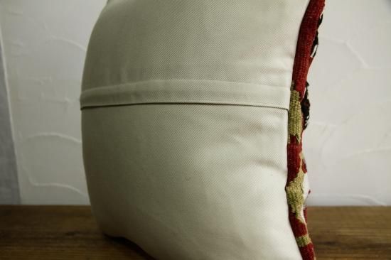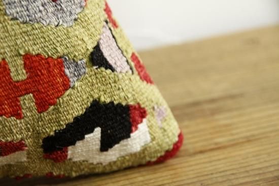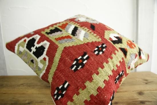 上質なオールドキリムを裁断して作られたクッションカバーです。表はオールドキリム、裏地はコットンで縫製されています。ソファやフロアなどキリムクッションを置くだけでとてもおしゃれな空間になります。もちろん座布団代わりにもOKです。和室との相性も◎です。ヌードクッションは当店からのサービスでお付けしています!届いてすぐに素敵なインテリアアイテムに仲間入り!!