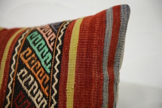 上質なオールドキリムを裁断して作られたクッションカバーです。表はオールドキリム、裏地はコットンで縫製されています。ソファやフロアなどキリムクッションを置くだけでとてもおしゃれな空間になります。もちろん座布団代わりにもOKです。和室との相性も◎です。ヌードクッションは当店からのサービスでお付けしています!届いてすぐに素敵なインテリアアイテムに仲間入り!!