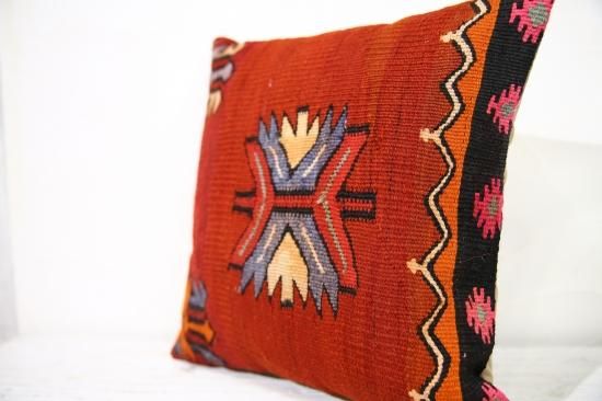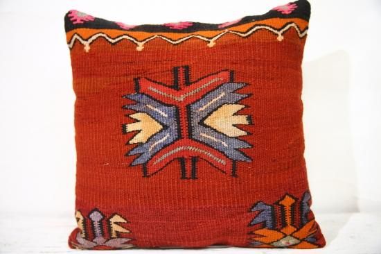 上質なオールドキリムを裁断して作られたクッションカバーです。表はオールドキリム、裏地はコットンで縫製されています。ソファやフロアなどキリムクッションを置くだけでとてもおしゃれな空間になります。もちろん座布団代わりにもOKです。和室との相性も◎です。ヌードクッションは当店からのサービスでお付けしています!届いてすぐに素敵なインテリアアイテムに仲間入り!!