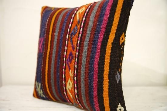 上質なオールドキリムを裁断して作られたクッションカバーです。表はオールドキリム、裏地はコットンで縫製されています。ソファやフロアなどキリムクッションを置くだけでとてもおしゃれな空間になります。もちろん座布団代わりにもOKです。和室との相性も◎です。ヌードクッションは当店からのサービスでお付けしています!届いてすぐに素敵なインテリアアイテムに仲間入り!!