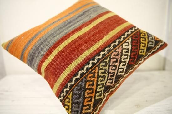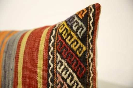 上質なオールドキリムを裁断して作られたクッションカバーです。表はオールドキリム、裏地はコットンで縫製されています。ソファやフロアなどキリムクッションを置くだけでとてもおしゃれな空間になります。もちろん座布団代わりにもOKです。和室との相性も◎です。ヌードクッションは当店からのサービスでお付けしています!届いてすぐに素敵なインテリアアイテムに仲間入り!!