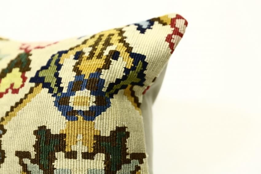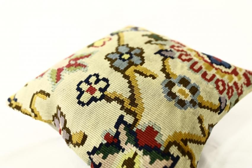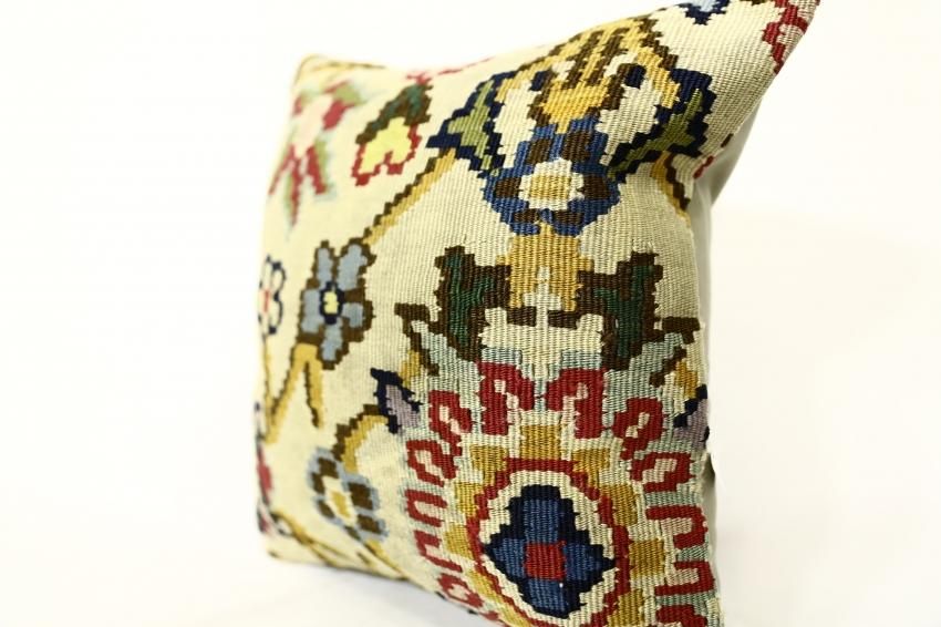 トルコファブリッククッション45x45cm ベージュ スウィングチューリップデザイン