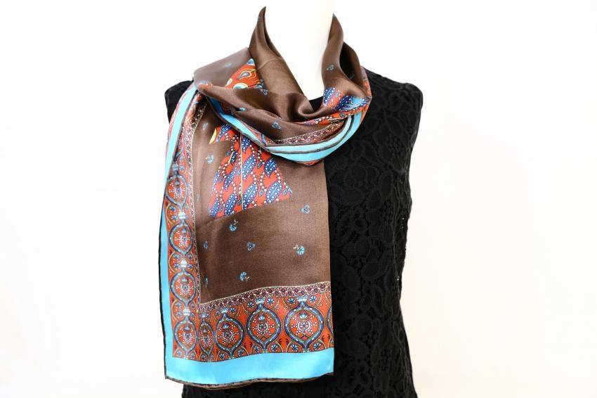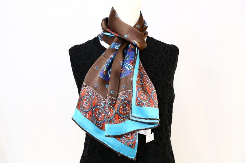 トルコ製 オリジナルシルクスカーフ シルク100% ーID S137