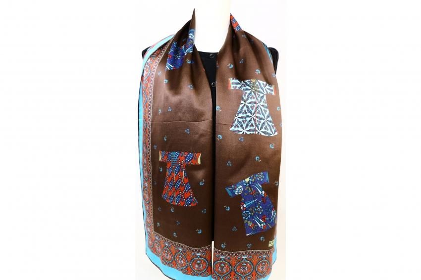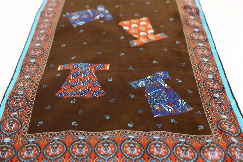 カフタンという伝統衣装デザインのシルクスカーフです。