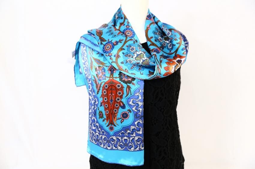 トルコの伝統柄のチューリップデザインのシルクスカーフです。