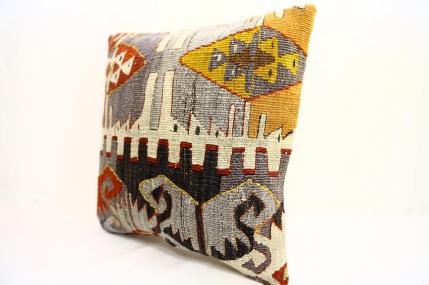 トルコファブリッククッション60x60cm オレンジ チンテマニデザイン