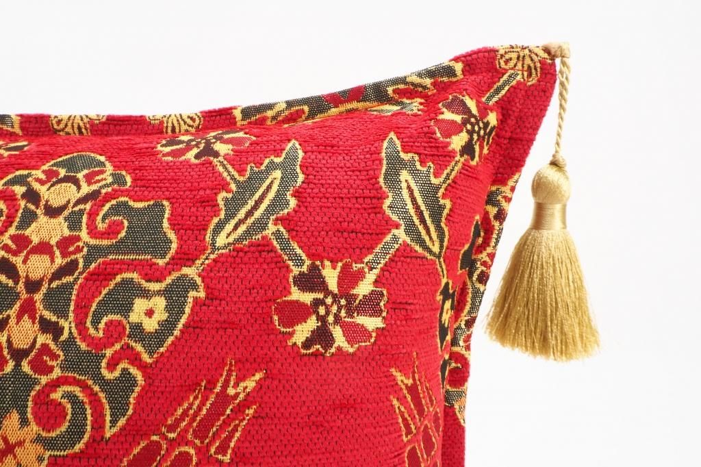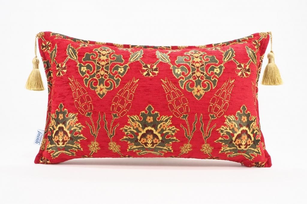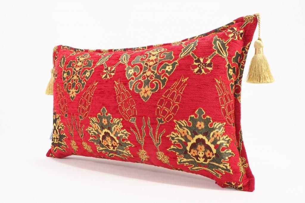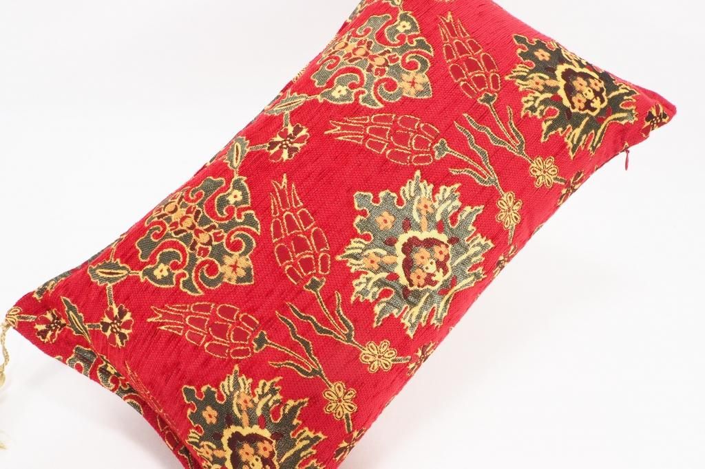 トルコファブリッククッション50x30cm レッド チューリップデザイン