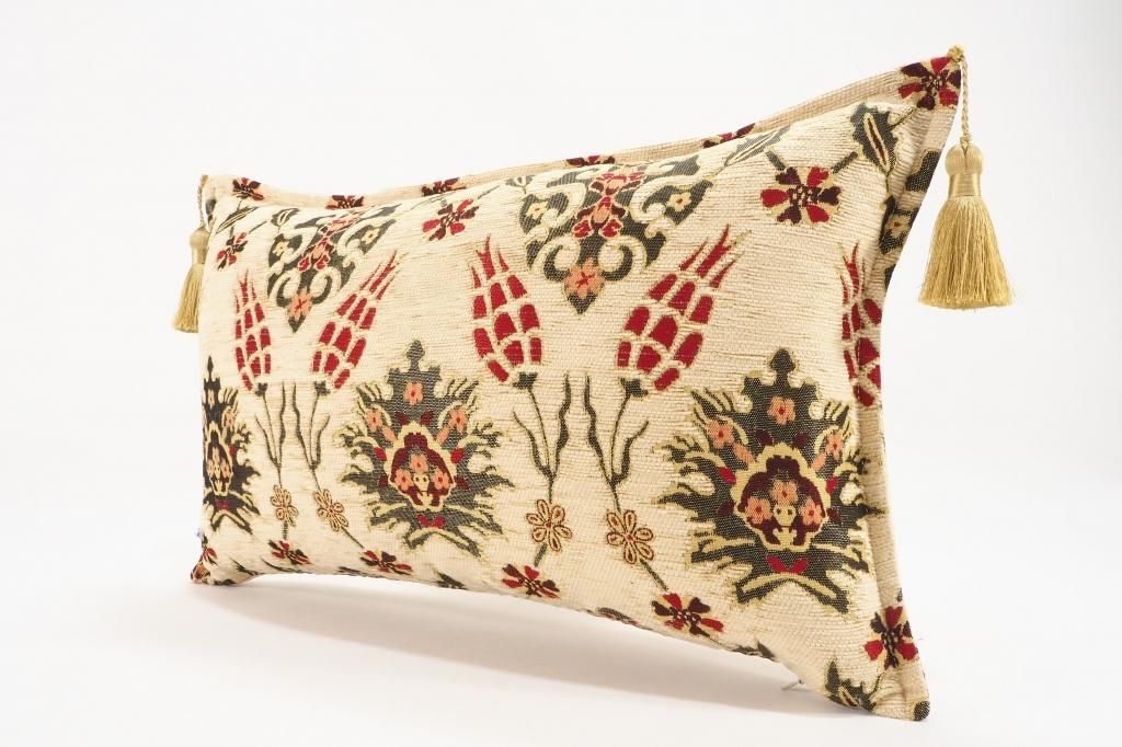 トルコファブリッククッション50x3cm ベージュ チューリップデザイン