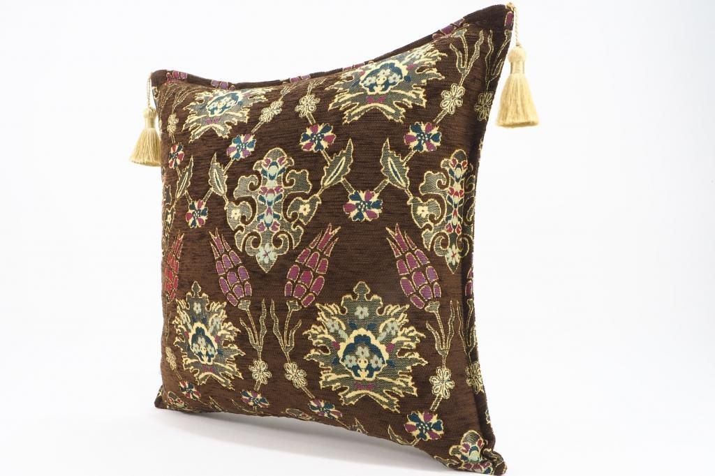 トルコファブリッククッション45x45cm ブラウン チューリップデザイン2