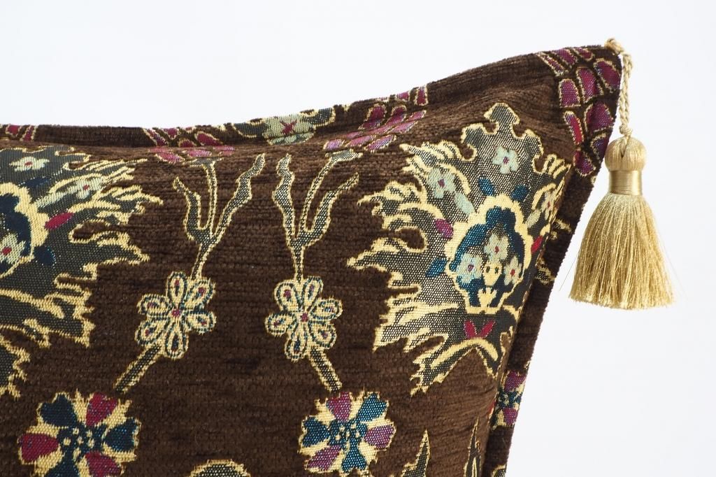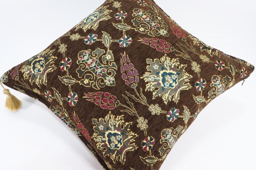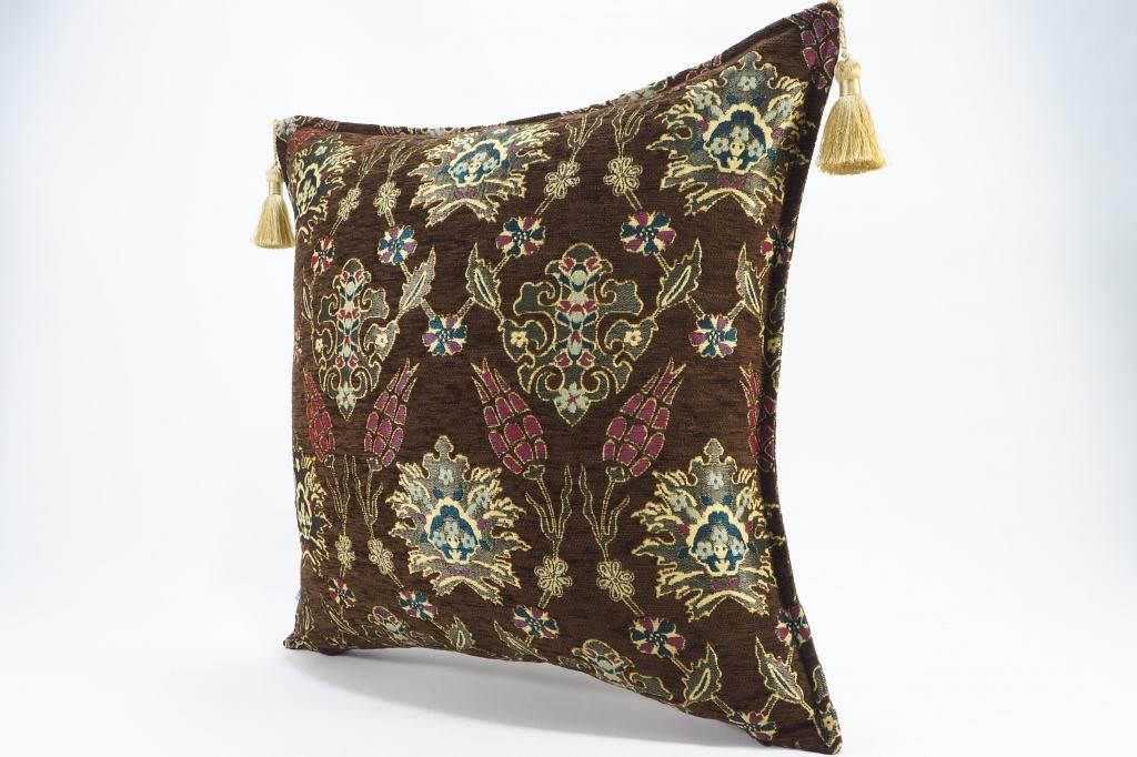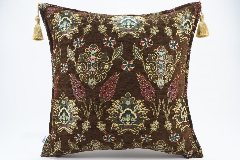 トルコファブリッククッション50x50cm ブラウン チューリップデザイン2