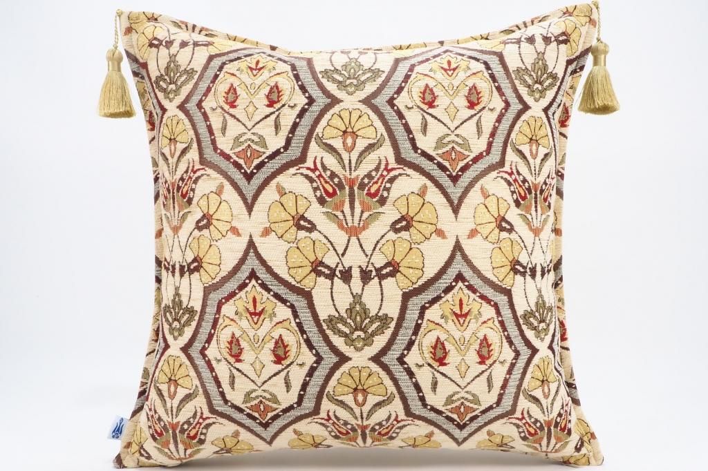 トルコファブリッククッション45x45cm ベージュ アラビアンナイトデザイン