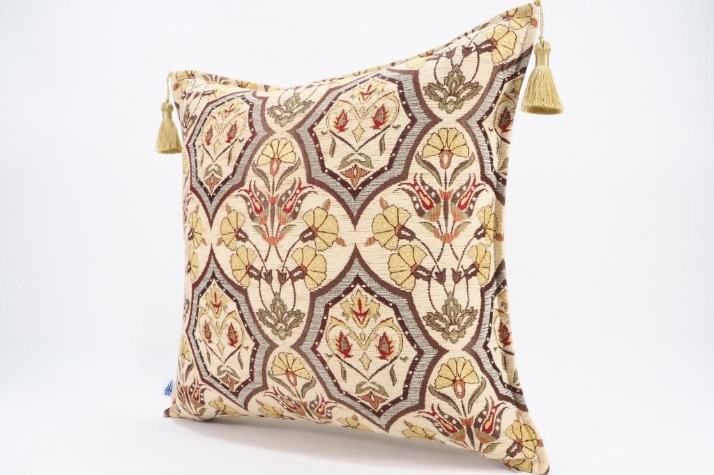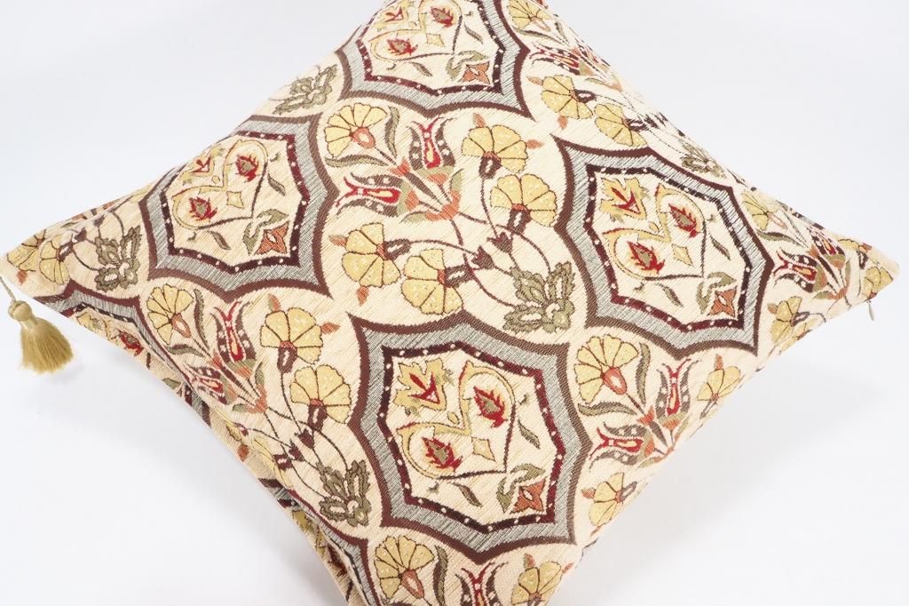トルコファブリッククッション45x45cm ベージュ スウィングチューリップデザイン