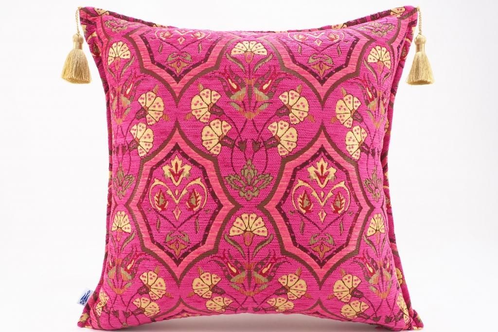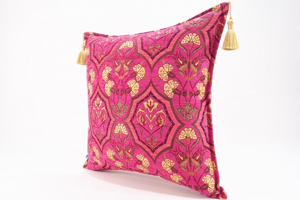 トルコファブリッククッション60x60cm マゼンタ チンテマニデザイン