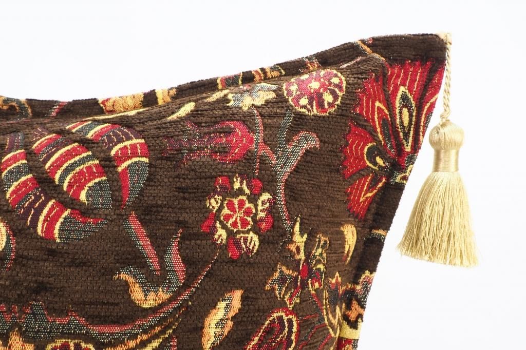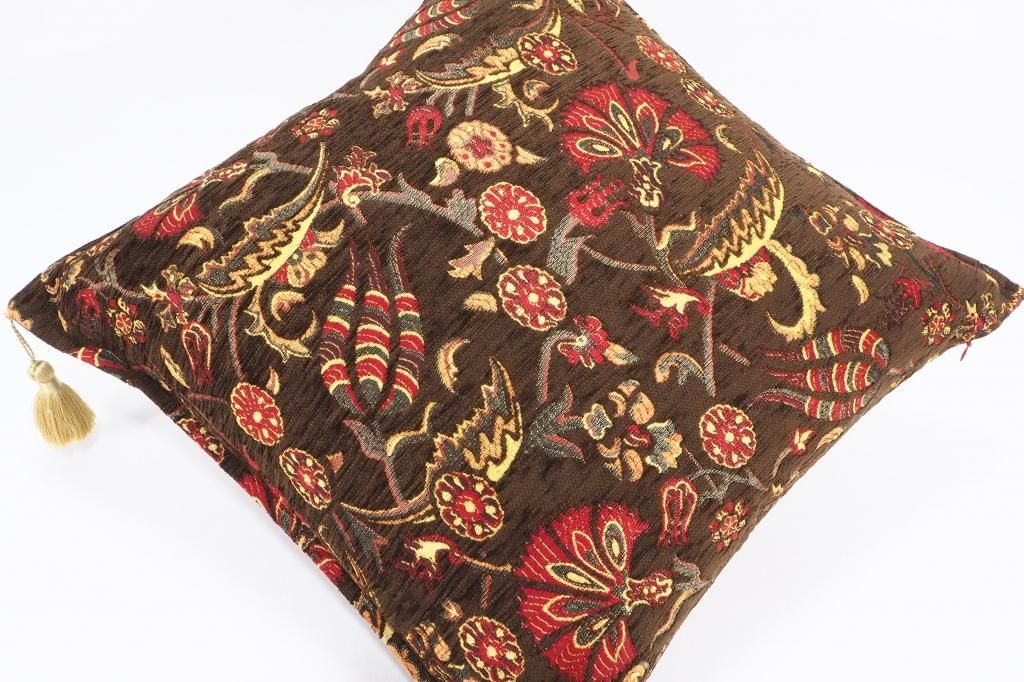 トルコファブリッククッション50x50cm ブラウン チューリップ&カーネーションデザイン