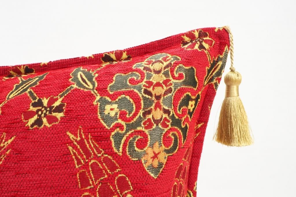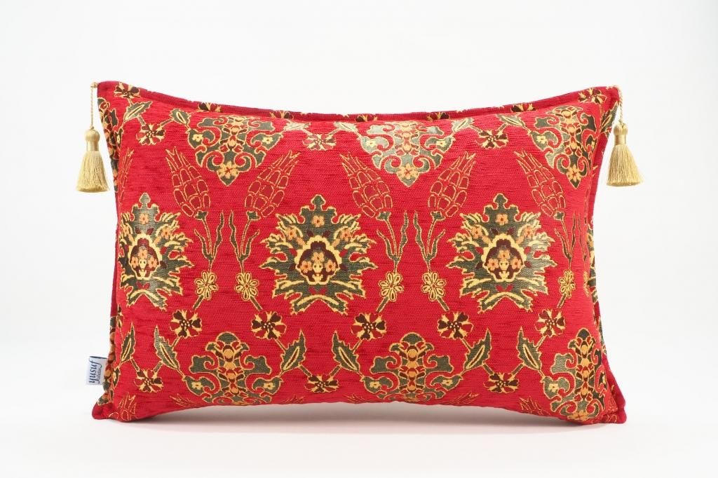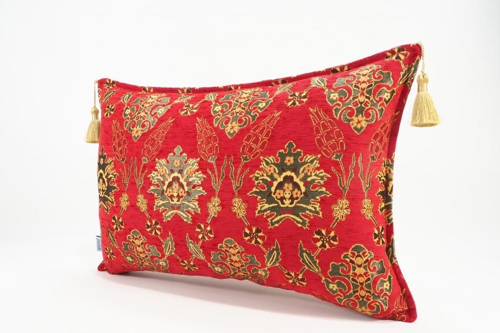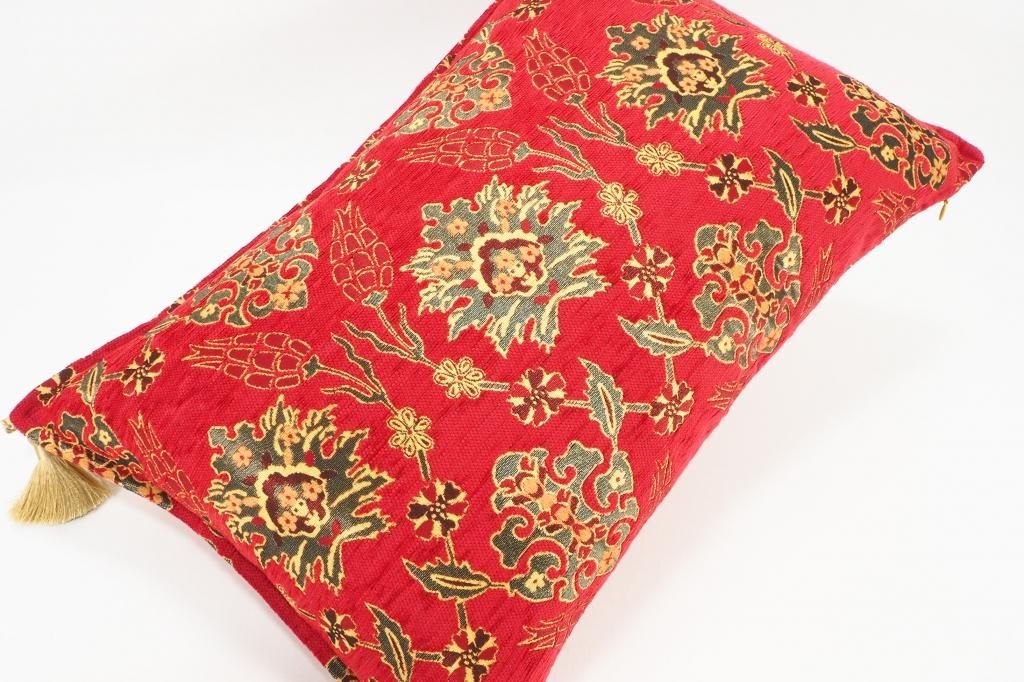 トルコファブリッククッション60x40cm レッド チューリップデザイン